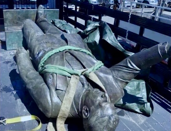 Where will it go? Probably not on city land because it’s a magnet for midnight Social Justice Vandals who demonstrate heroism by attacking a statue.
