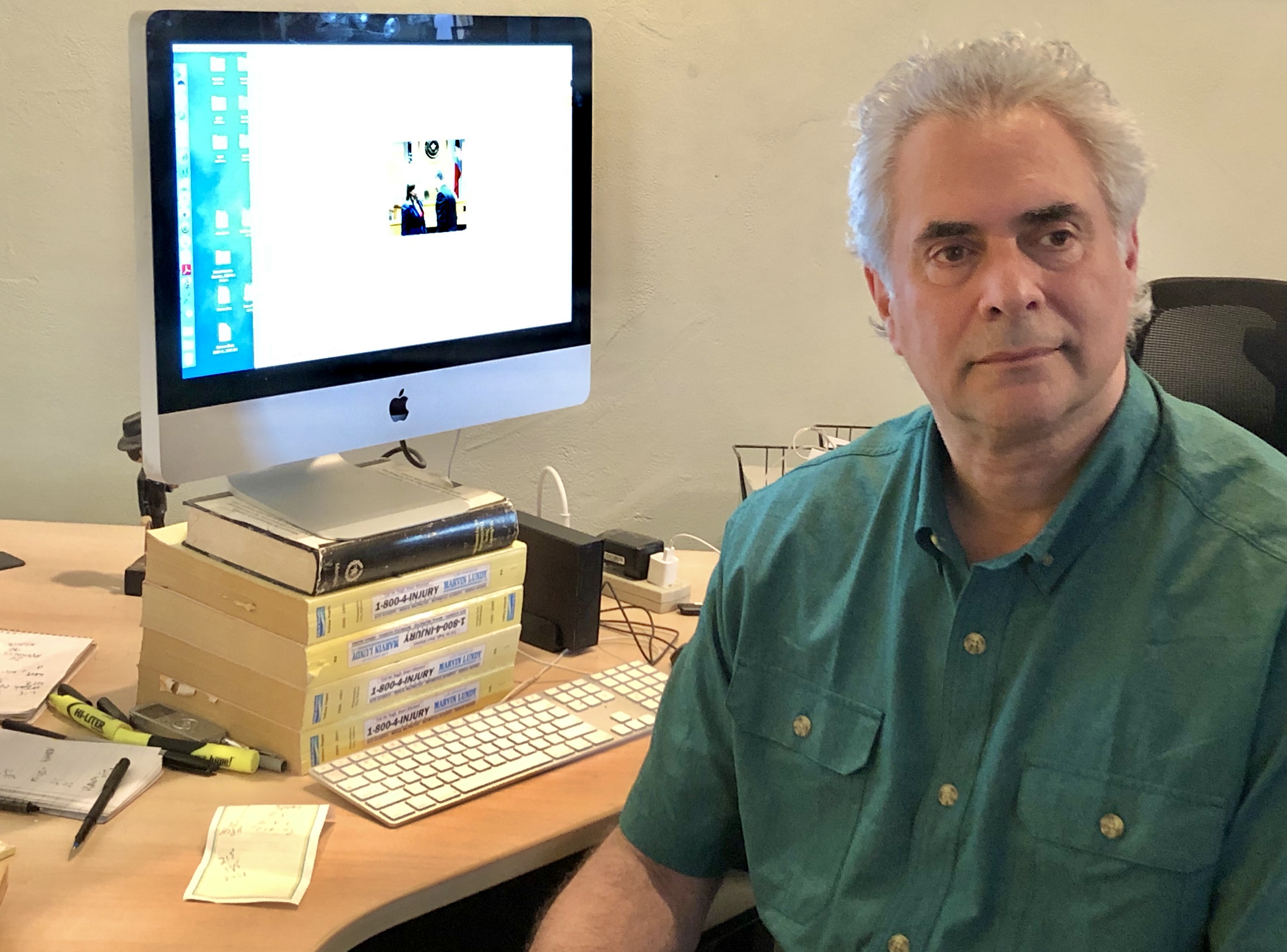 He confesses, “I could use some paying gigs,” says his 2009 Nissan needs replacing, but he has no plans to stop BigTrial.net.