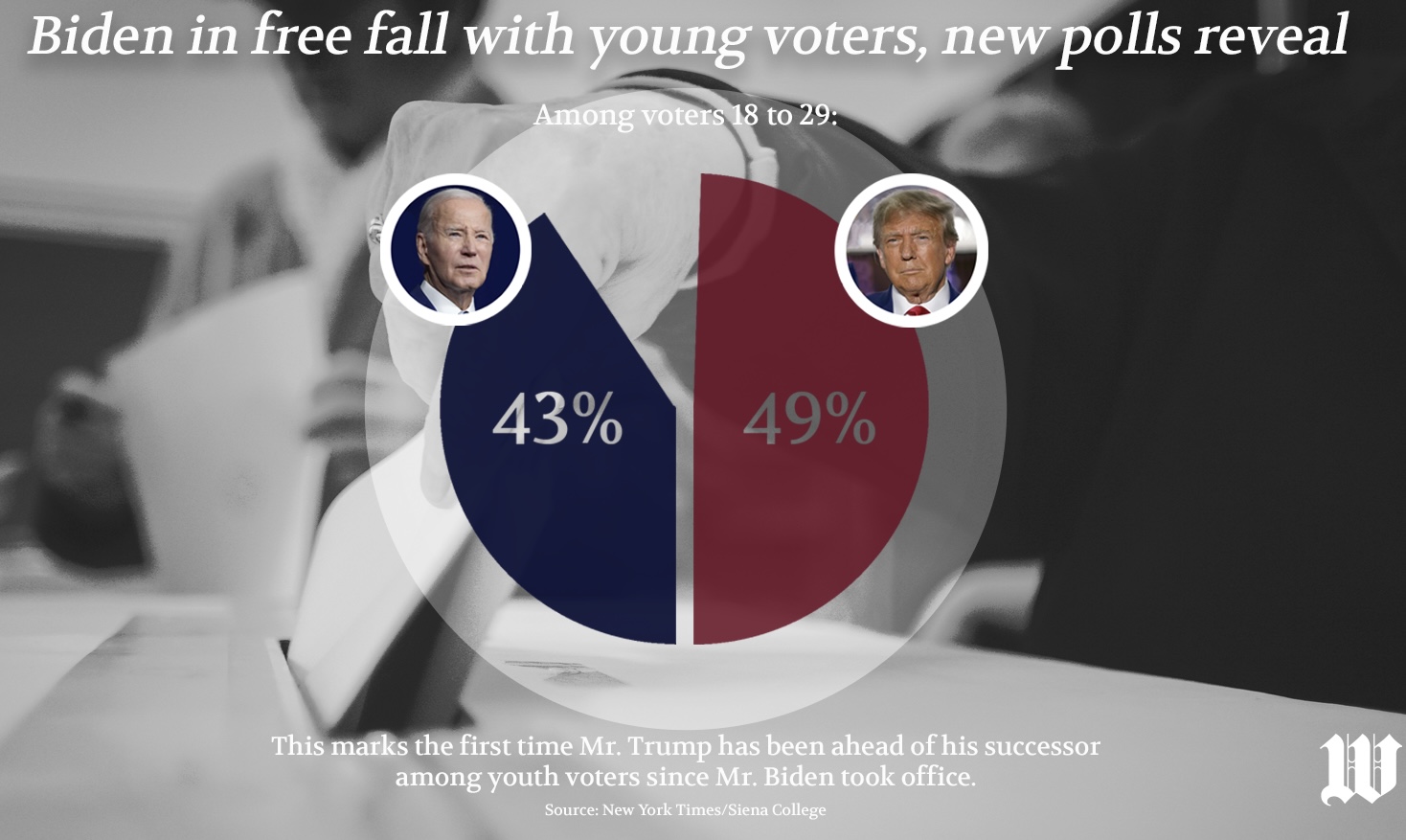 The Bad News for Joe Biden is that youth (18-30, roughly) have fallen out of love with him.