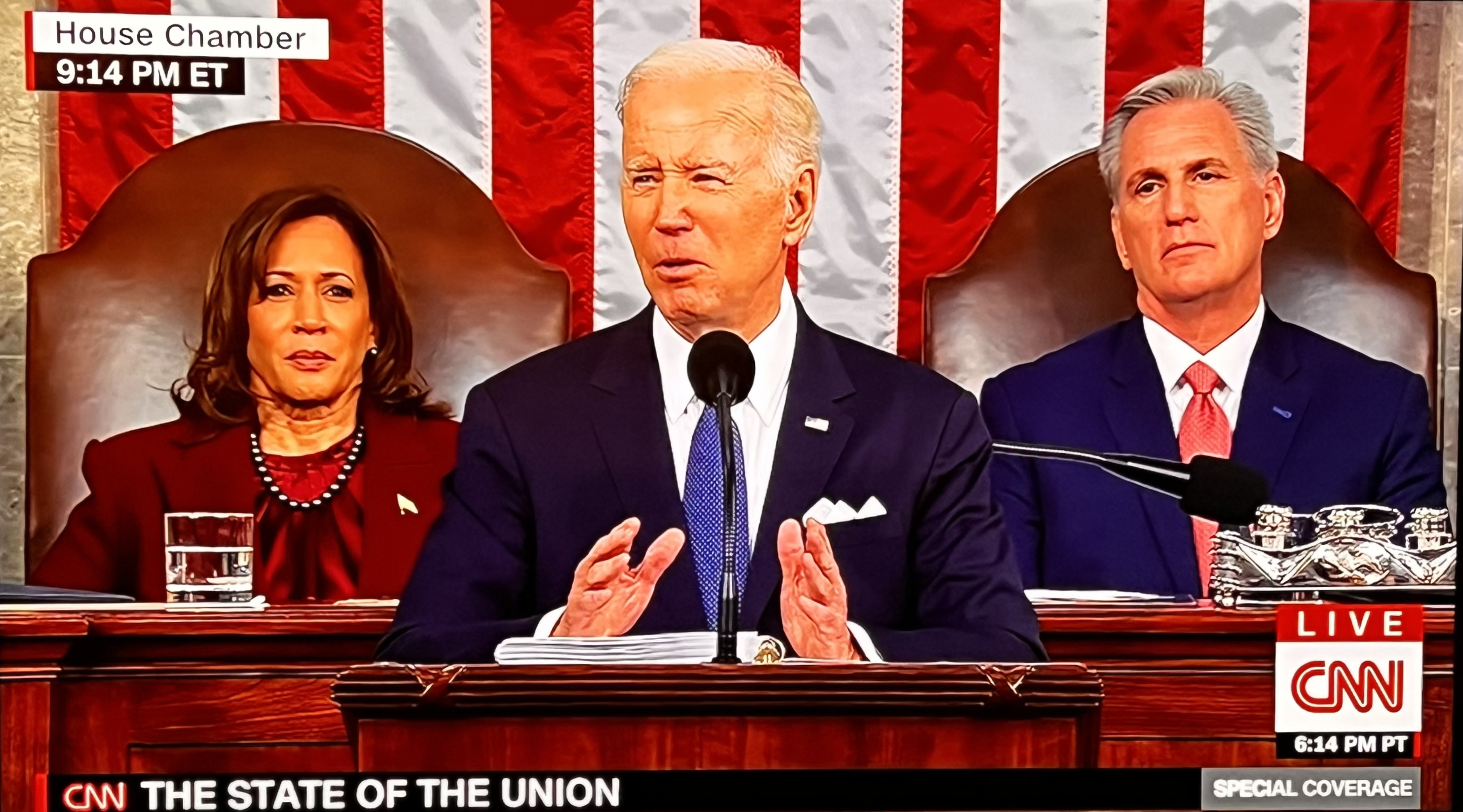 Looking forward, there was the usual liberal wish list, plus a mention of the Memphis murder of Tyre Nichols, morphing to a statement supporting police. A neat double play that got the chamber on its feet.