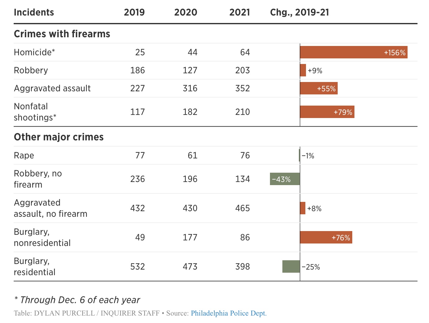 As always, I strive to be fair. It is true that selected crimes have dropped in the last year, and the Inquirer was kind enough to prepare a chart.