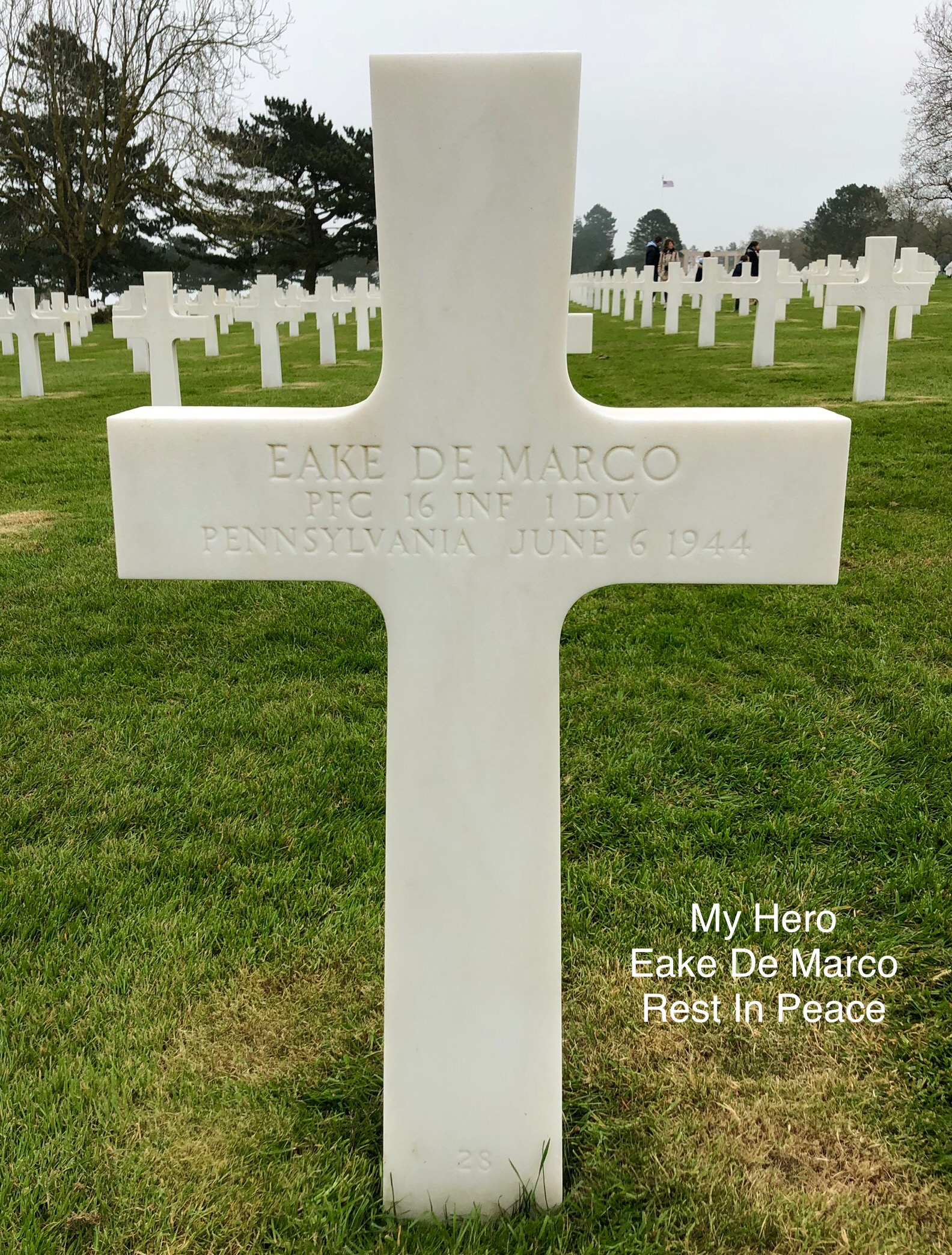 I walked the rows of tombstones and found the grave of a Pennsylvanian: Pfc. Eake De Marco, 16th Infantry, 1st Division, died on D-Day.