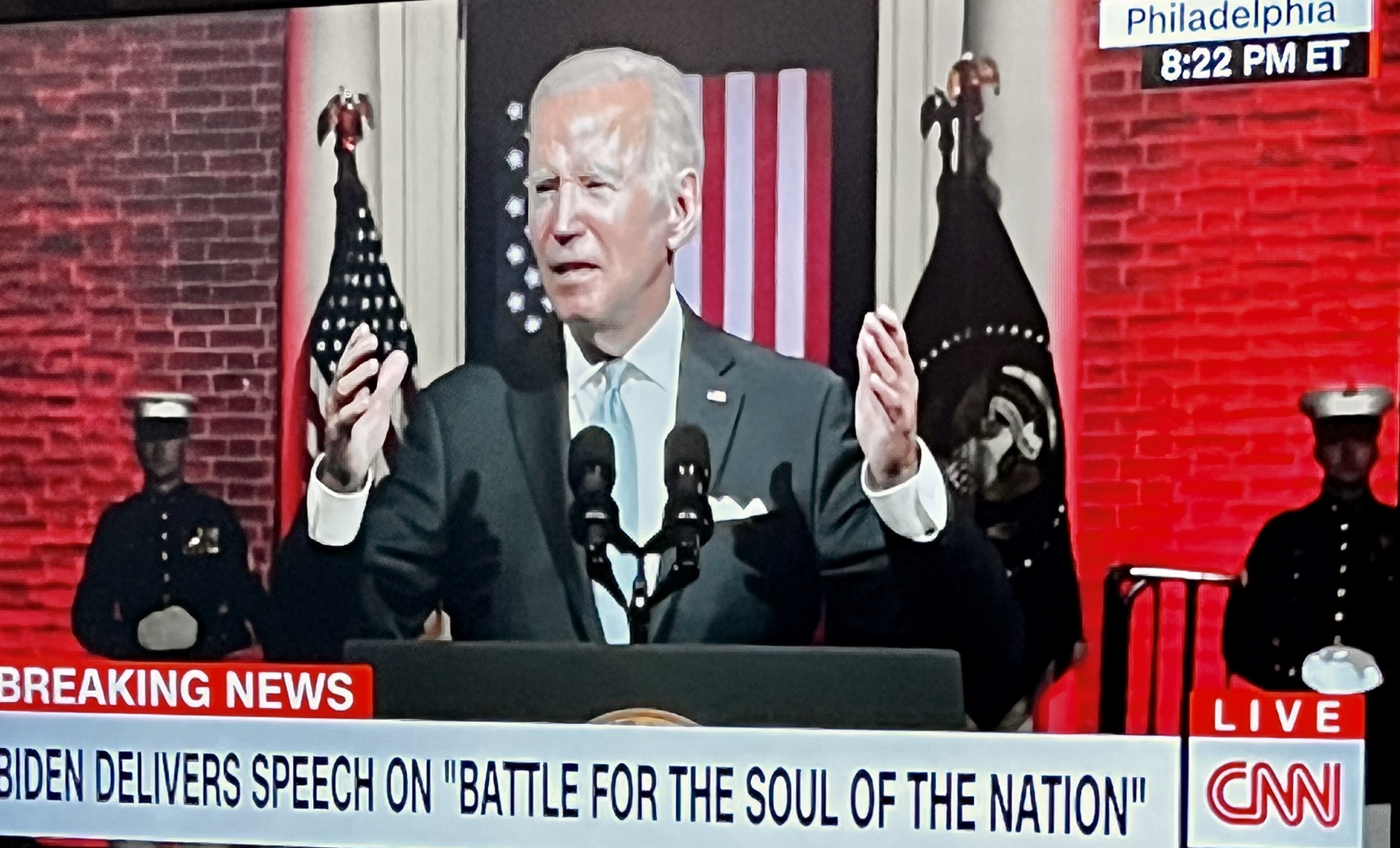 Standing before the back door to Independence Hall, President Joe Biden delivered a forthright political address, but did it in a slightly unusual way.