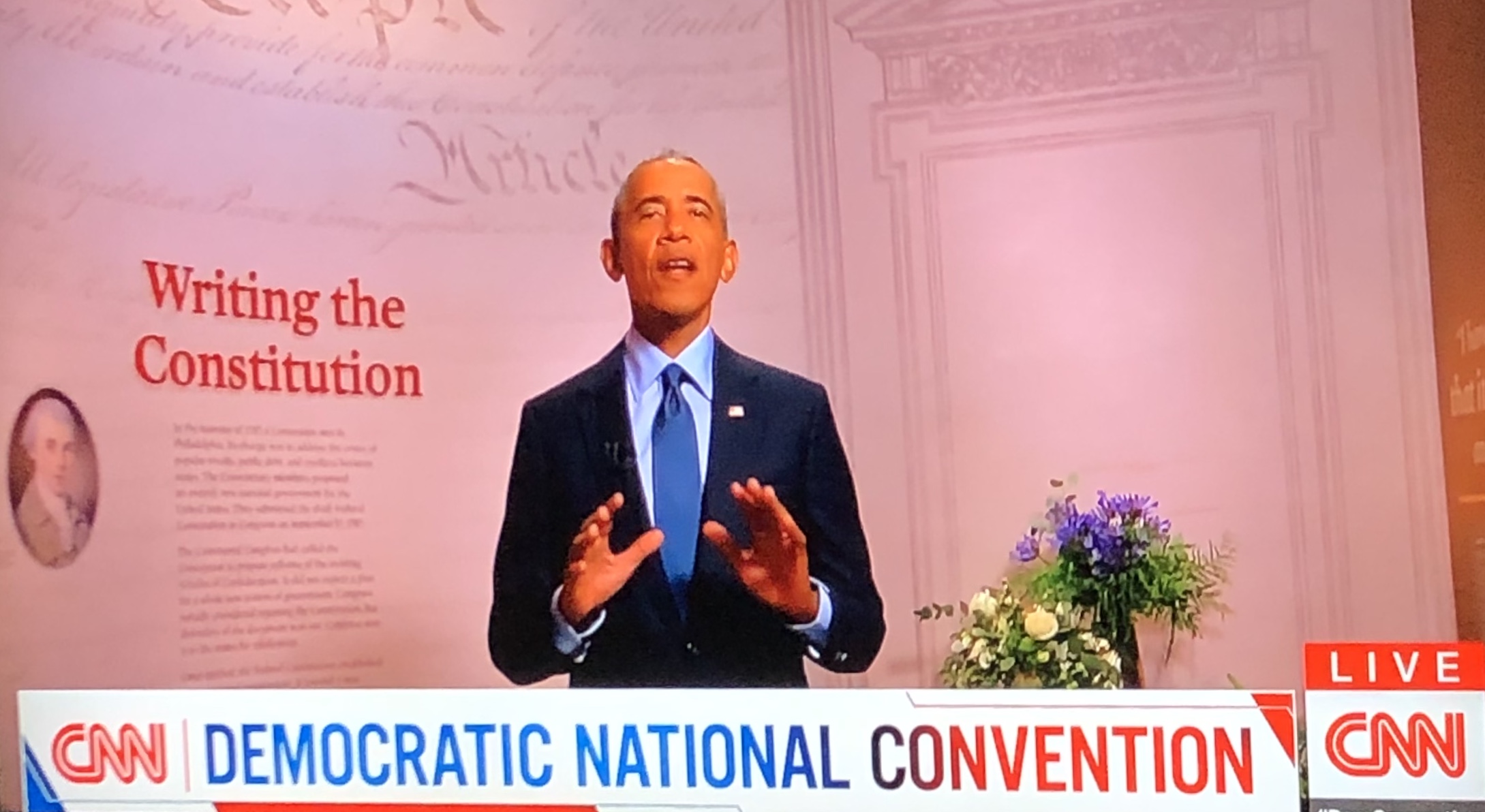 Standing in that museum gave him an opportunity to reflect on America’s imperfect past, in a low-key speech designed for a TV audience and not for applause. Echoing a previous theme of “one America,” Obama talked about when our ancestors arrived they often were short-changed. He avoids using terms like “structural racism,” as did Harris, who followed him and was the evening’s final speaker.