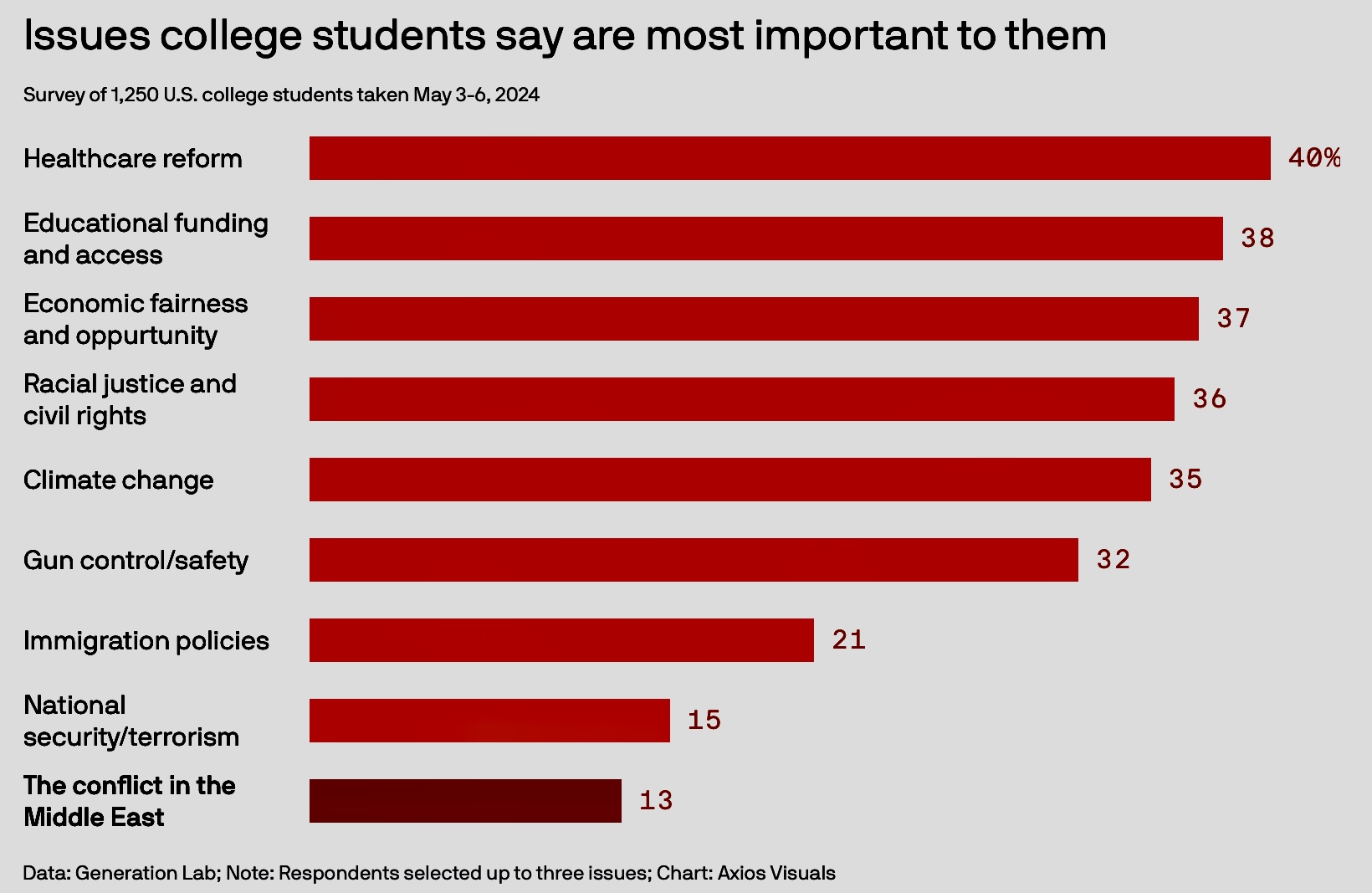 A recent poll of college students showed the Mideast ranks dead last, 9th of 9, of subjects they care about.